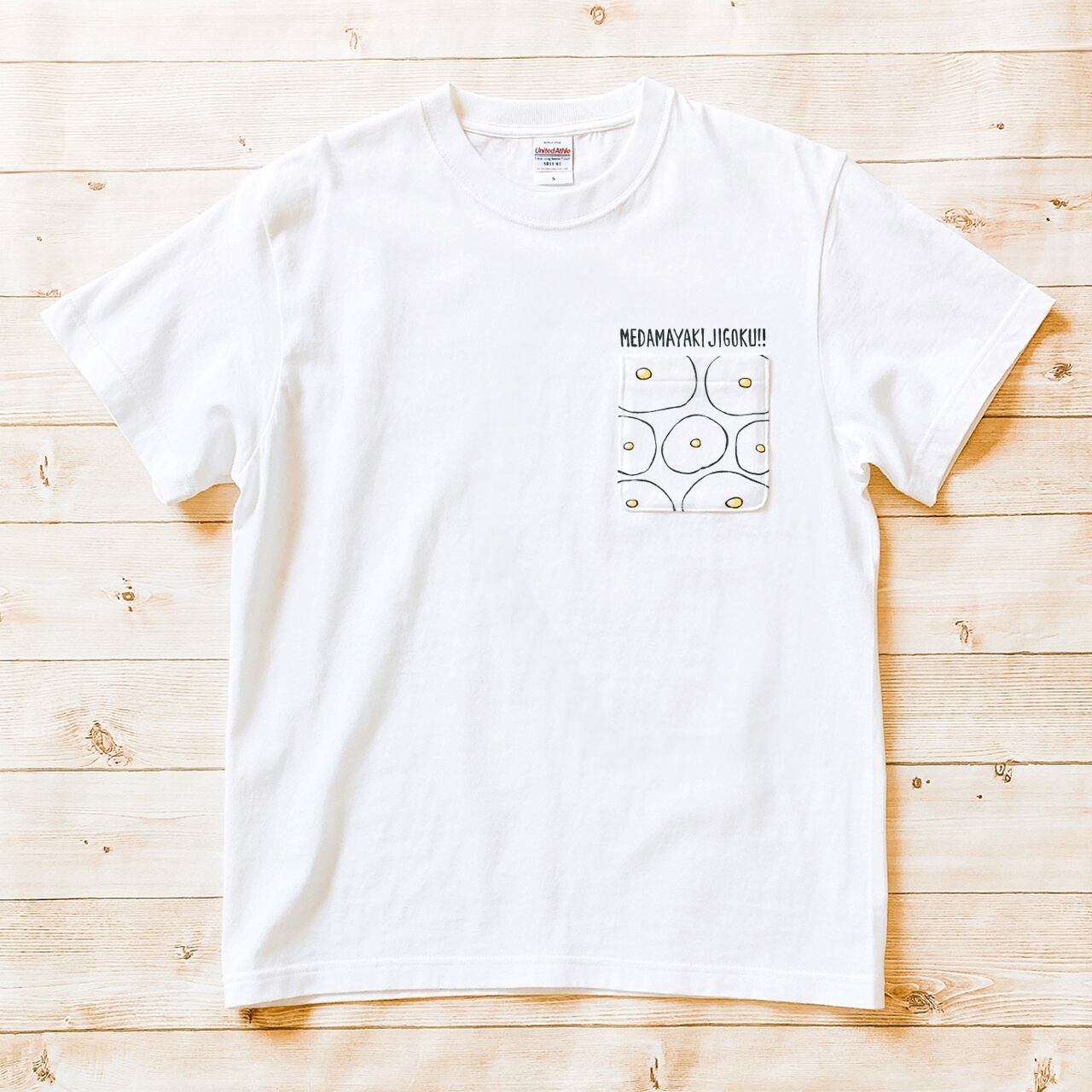 半袖ポケット付Tシャツ『めだまやき地獄!!』メンズ レディース たまご