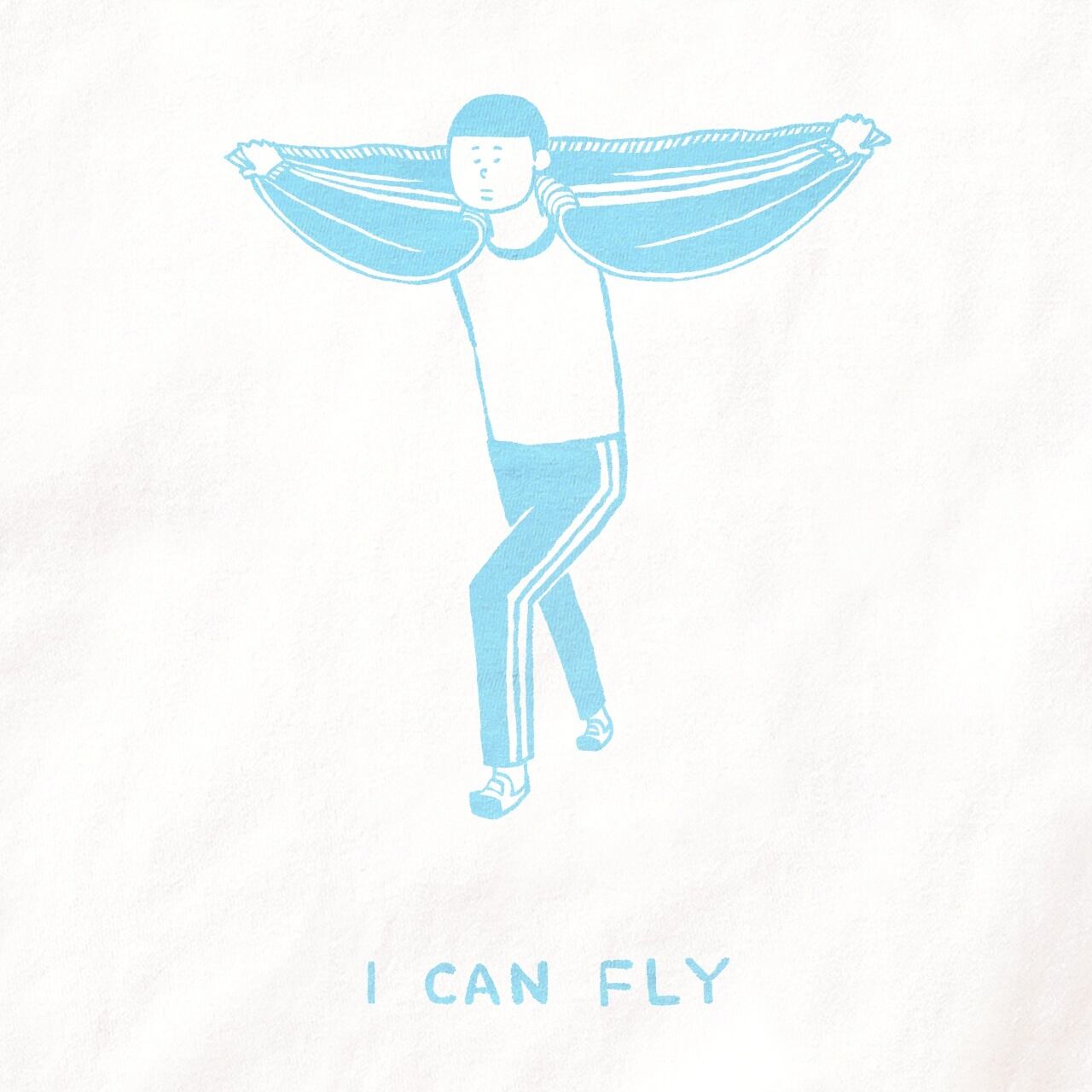 長袖Tシャツ『私は飛ぶことができます・水色画』男女兼用 ロンT ホワイト 空