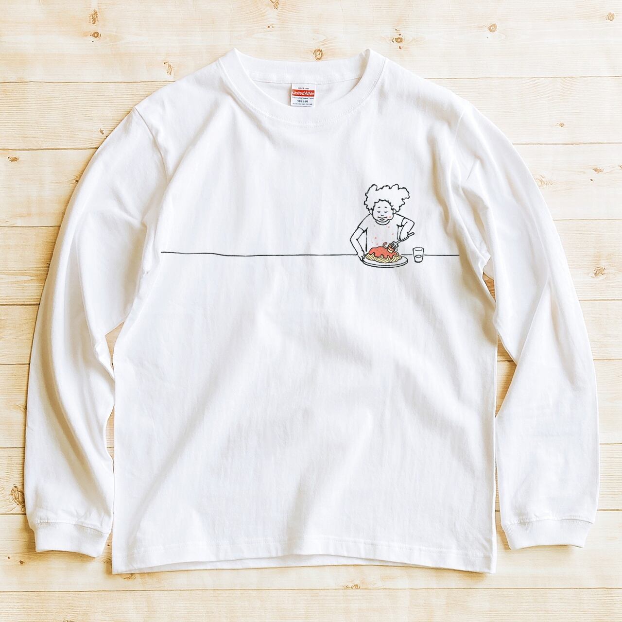 長袖Tシャツ『ミートソーススパゲティ』男女兼用 ロンT ホワイト