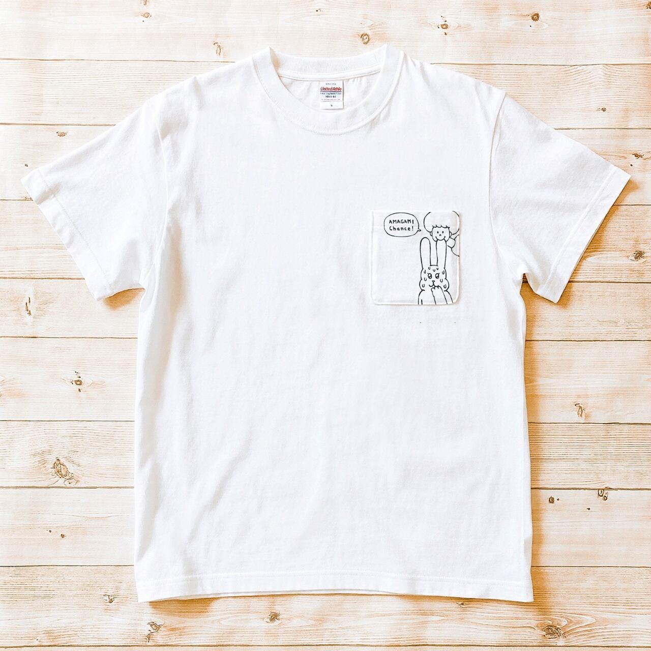 半袖ポケット付Tシャツ『アマガミチャンス!』メンズ レディース うさぎ
