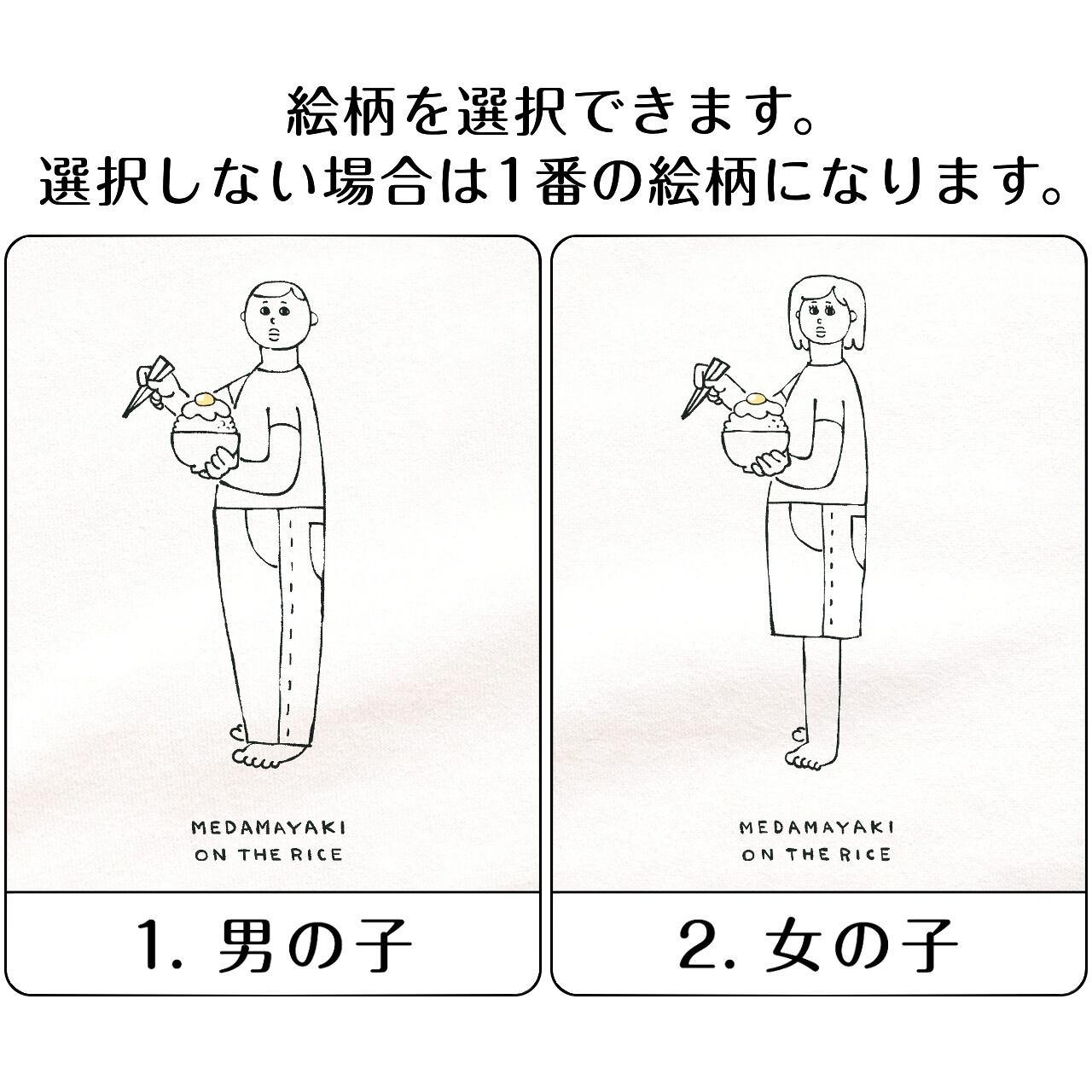 長袖Tシャツ 絵柄選択可『メダマヤキオンザライス』男女兼用 ロンT ホワイト たまご
